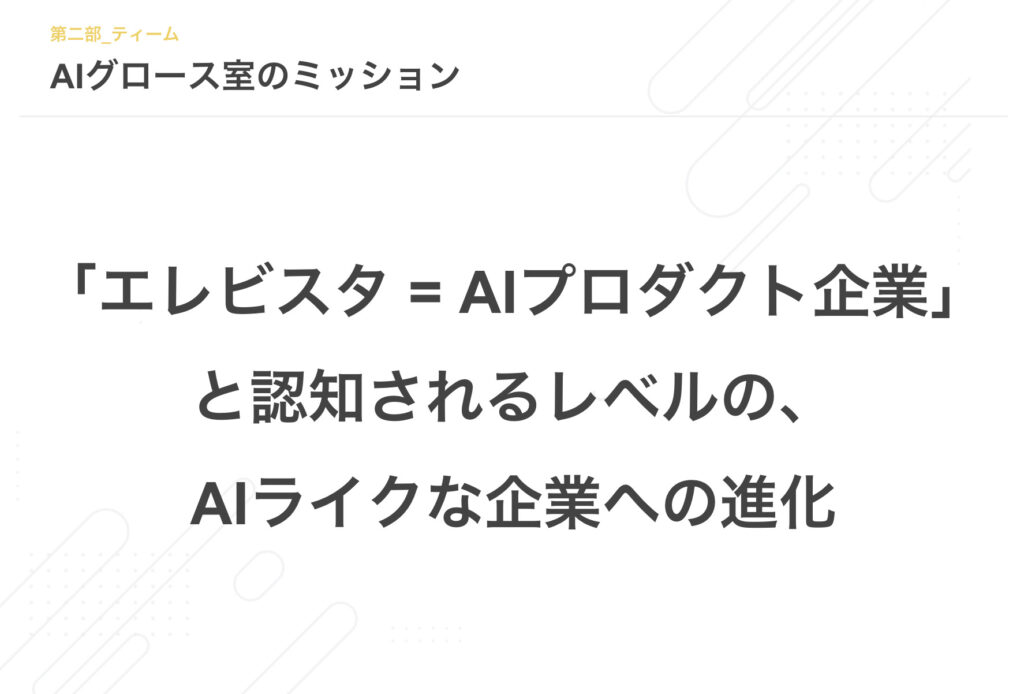 「エレビスタ = AIプロダクト企業」と認知されるレベルの、AIライクな企業へ進化させることです。