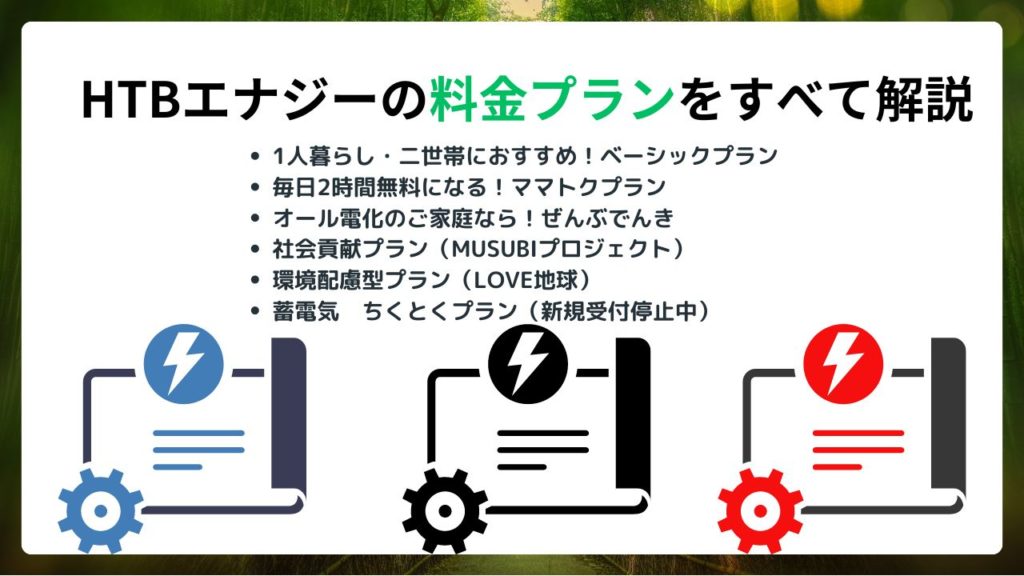 それでは、HTBエナジーの料金プランは次の5つです。やばいと言われる理由があるのか、見てみましょう!