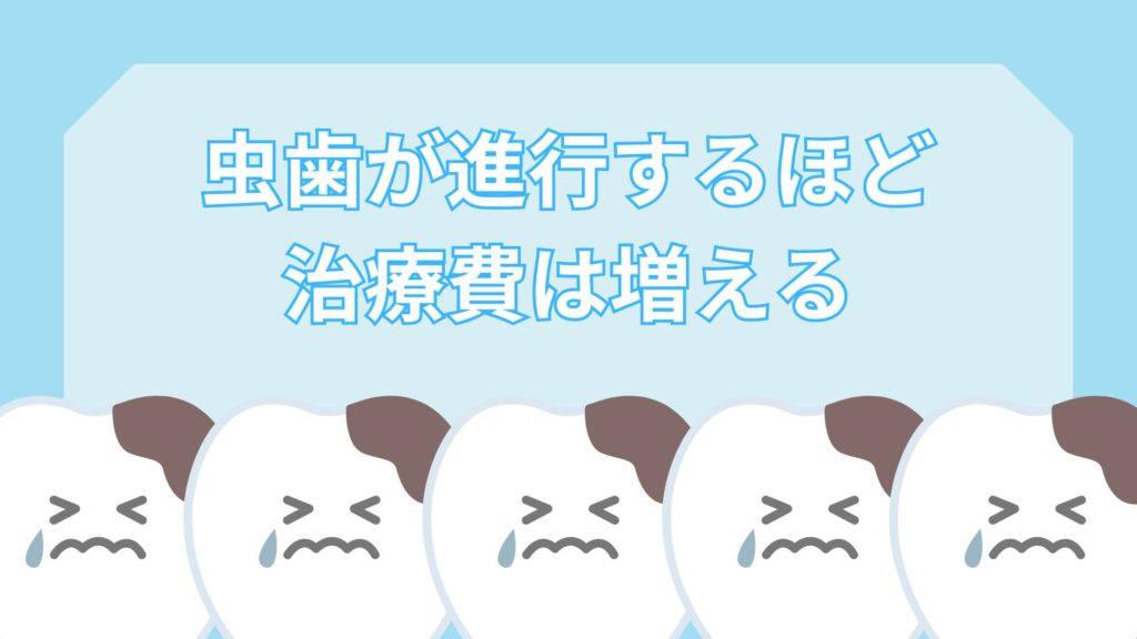 虫歯は進行するほど、治療回数や費用が増えていくので、定期健診を忘れず異常に気づいた場合は、早めに対処しましょう。