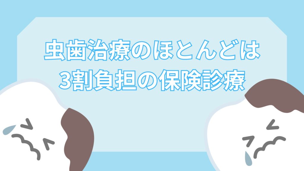 保険診療とは、公的医療保険が適用される範囲で受ける診療のことで虫歯治療のほとんどが保険診療です。保険診療の場合、社会保険や国民健康保険に加入していれば保険が適用されるため自己負担額は3割となります。