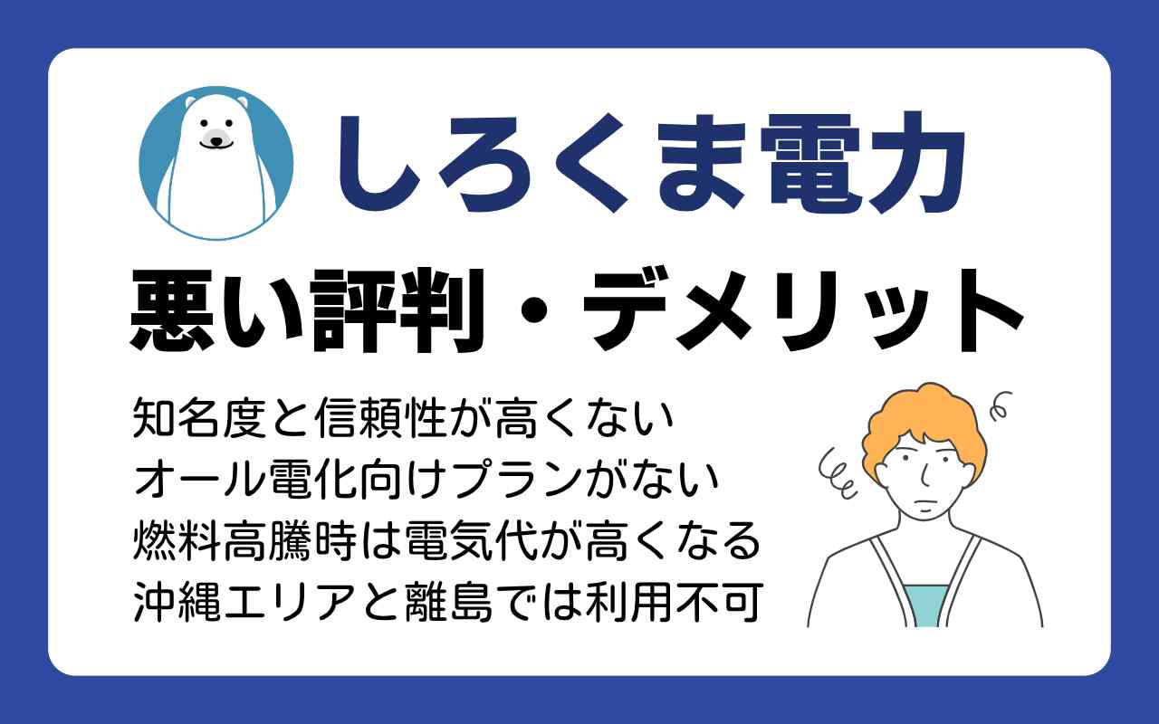 まずは、しろくま電力のデメリットを知っておきましょう。